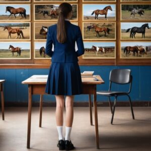 He took hold of my arm and walked me through the back door to another room. He told me to wait there, he’d be back in a moment. In this room was just an old desk with lots of horsey pictures behind it, so I just stood there and waited, looking at the pictures.